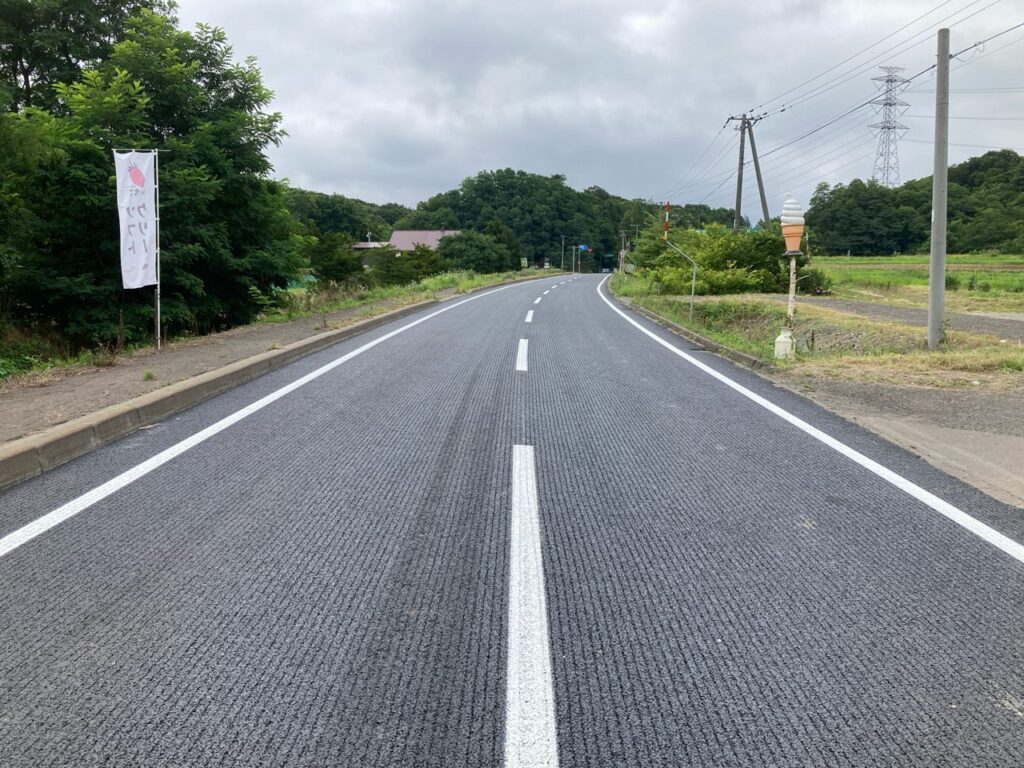 岩見沢市・栗山町と長沼町を繋ぐ広域新道国道線の舗装修繕工事でした。大型車の交通量が多く、欠損がひどかったため、切削・オーバーレイ工を施工することにより、車両の走行性を向上させました。