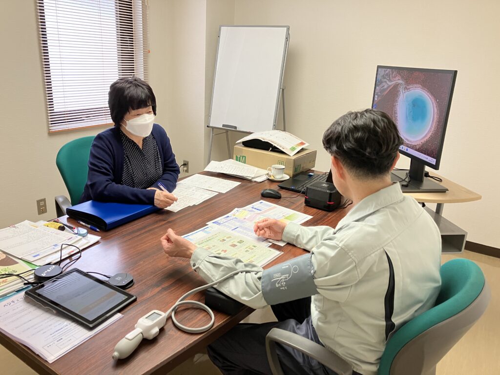 アドバイスを聞き、自身の健康について相談しています